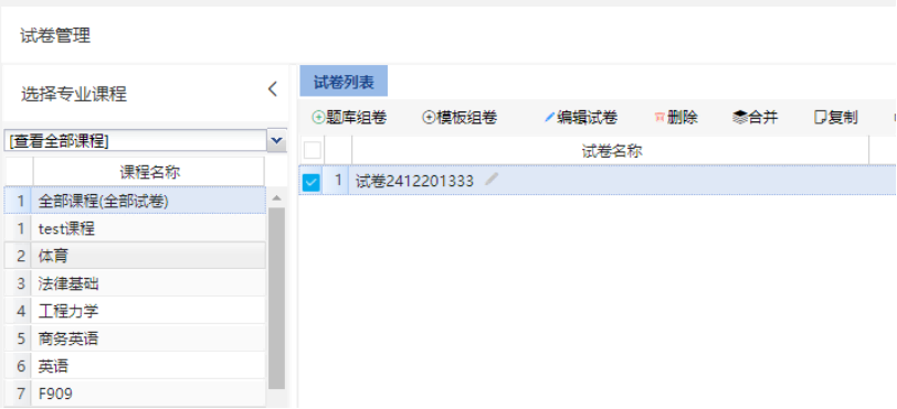 考试安排的功能区划分为左右两栏,左边为考试搜索去,上部分按专业课程搜索,下半部分按考试时间,试卷名称,作者搜索考试。
