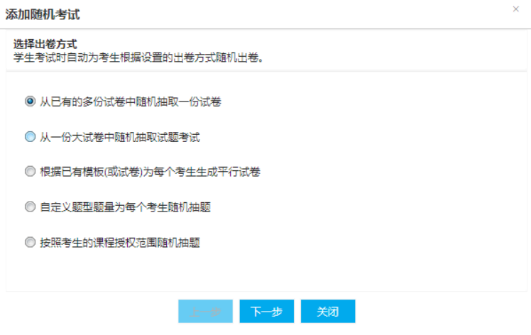 第一种随机方式:使用现有的多份试卷随机分配给考生